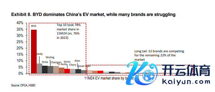 进一步来看,这一快速转型激勉全球汽车行业强烈竞争,汇丰权衡价钱战和行业整合的故事将络续献技,比亚迪和特斯拉将通过价钱战进一步扩大竞争上风,而年销量不及3万辆的企业永恒活命的可能性较低。