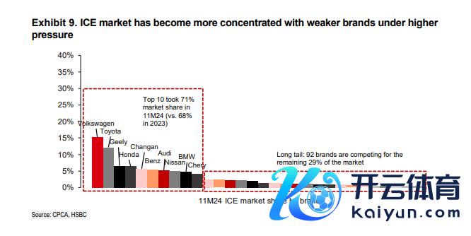 与此同期,这种快速转型可能激勉了全球汽车工业中最罪恶的决战。汇丰权衡,价钱战和行业整合的故事将络续献技,硬汉愈强、弱者活命戮力,利润和利润率可能会暂时收缩,给最薄弱的要领带来更大的压力。