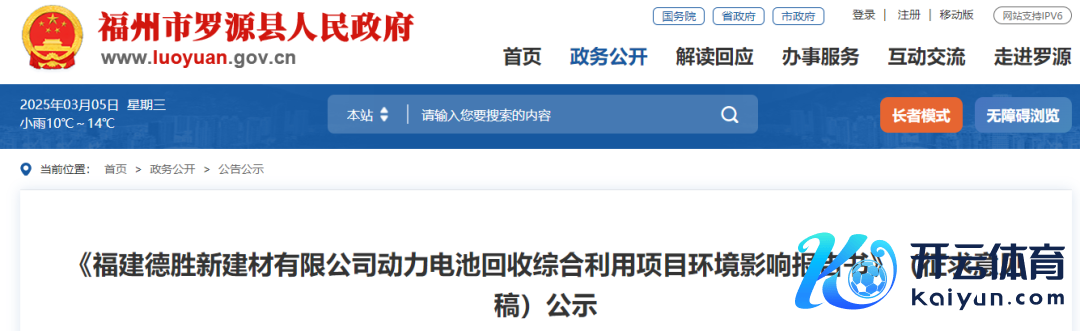 3月3日,福建省福州市罗源县东说念主民政府就福建德胜新建材有限公司能源电板回收详细行使方式进行了环境影响申诉书公示。