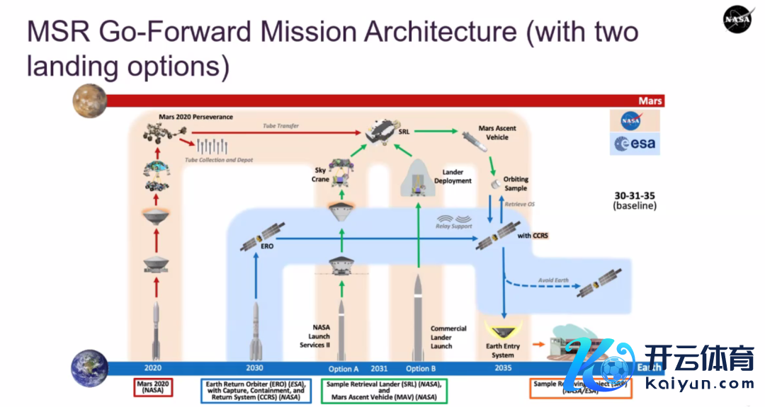 尽管意识号已将「蓝坚持峡谷」样本封存,但的确的考证只可在地球上进行。为什么?因为火星车上的器用虽先进,却无法进行高分辨率同位素分析或电子显微镜不雅察,这些能永诀生物与非生物发源。▲NASA和欧洲航天局(ESA)的火星样本复返(Mars Sample Return,简称MSR)筹画,恰是为此而生:分三步走——意识号网罗样本;着陆器取回并辐照到火星轨说念;另一艘飞船运回地球,预测2030年代已毕。