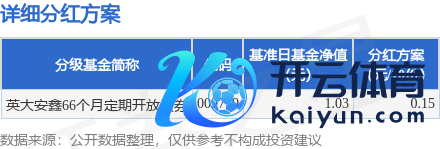 本站音书开云(中国)Kaiyun·体育官方网站-登录入口,9月24日发布《对于英大安鑫66个月依期灵通债券型证券投资基金2025年第一次收益分派公告》。本次分成为2025年度第一次分成。公告披露,本次分成的收益分派基准日为9月9日,详备分成决策如下: 本次分成对象为权利登记日在本公司登记在册的本基金份额捏有东说念主,权利登记日为9月25日,现款红利披发日为9月26日。本基金不接受红利再投资,收益分派仅领受现款面孔凭证国度筹备顺次,基金向投资者分派的基金收益,暂免征收所得税本次分成免收分成手续费
