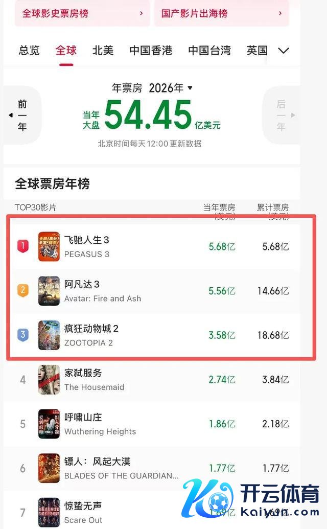 就连《阿凡达3》和《猖獗动物城2》齐统统压不住,(一部分原因是昨年上映,本年收的仅仅一部分),可以说是2026年的最强新片出生了。