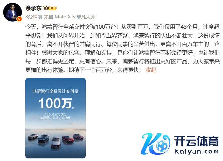 余承东:鸿蒙智行全系寄托冲破100万台余承东:鸿蒙智行全系寄托冲破100万台