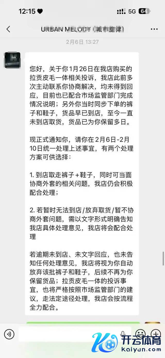 在两边协商经由中,商家为冷女士提供了贬责决策:带衣服到店里维修,大致商家寄送维修膏。但冷女士并不接纳,她的诉求是退货退款。