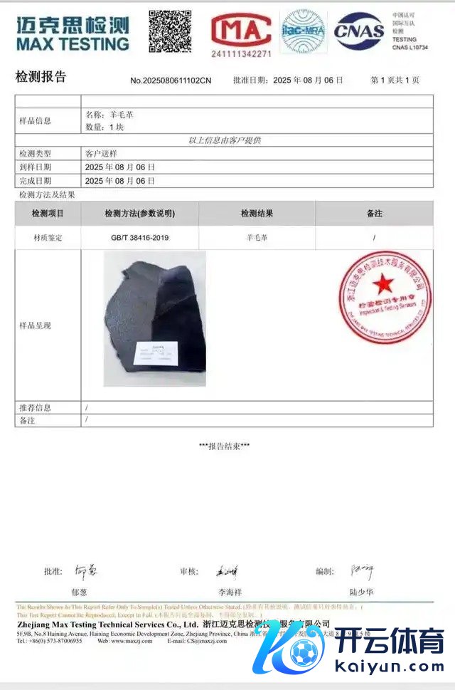 △商家提供的检测呈文,检测成果为“羊毛革” 受访者供图